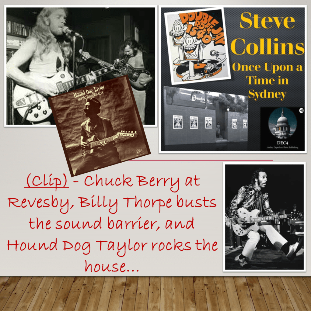 There’s a second instalment of this companion newsletter on our site, with a brief clip from the episode, more information on Hound Dog Taylor, including some embedded audio, links to a detailed Billy Thorpe bio, and some commentary on Chuck Berry’s unique place in the history of rock and roll.
