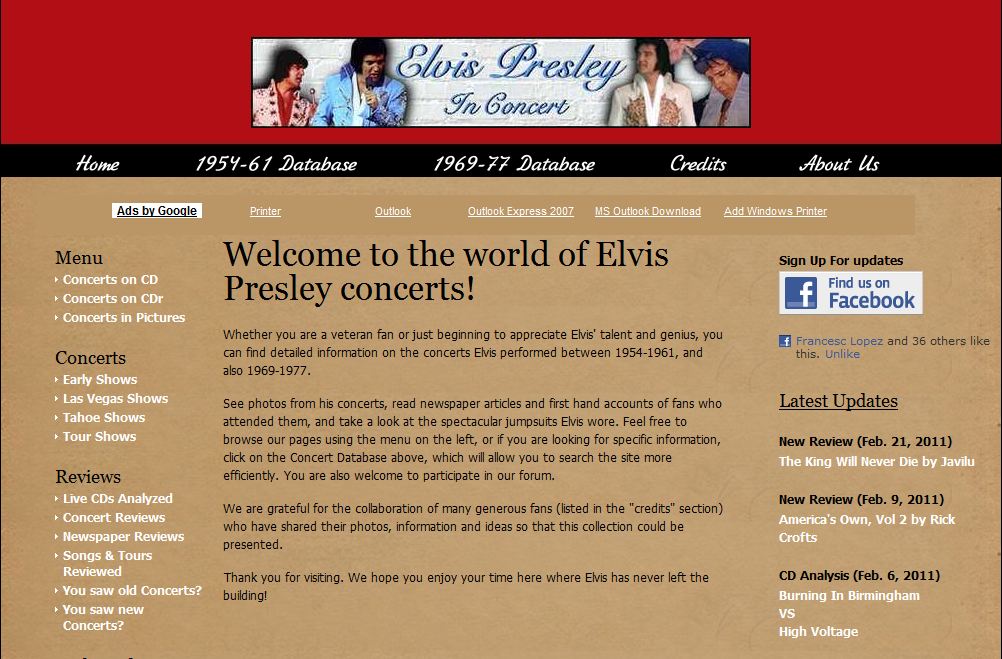 Several years went by before I thought about creating a website, so the first years were about collecting his music and reading the fanzine released by the club, Elvis in Spain. The creation of elvisconcerts.com came about because there was minimal information on the internet about Elvis’ concerts, and because I have an obsession about cataloguing ‘things’. During the 1990s, I was keeping track of basketball players playing in Europe; all their statistics, teams, you name it, I had it.