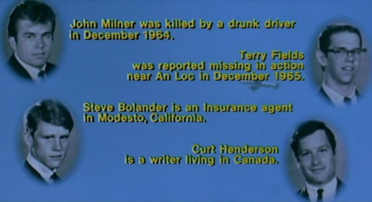 Terry is outwardly gung-ho about going to Vietnam while John Milner has a more grounded view, poignantly imploring him just to come back alive.